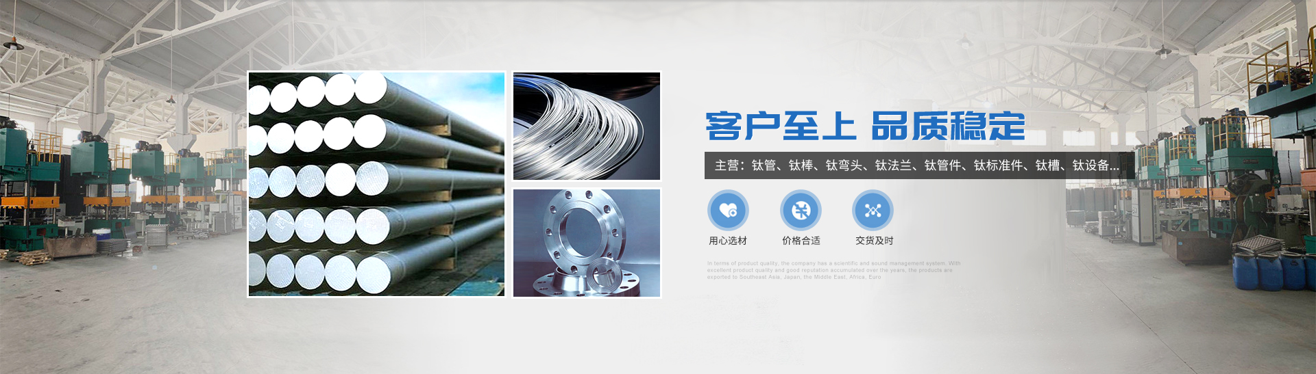 本公司的主營產品鈦制品有,鈦管,鈦棒,鈦彎頭,鈦法蘭,鈦管件,鈦標準件,鈦槽,鈦設備,鈦沖壓彎頭等。所生產各種規(guī)格的鈦制品主要運用于化工、電鍍、石油、電子、環(huán)保、海洋等領域"以質量求生存,靠服務求發(fā)展“為宗旨,客戶的滿意是我們的追求,歡迎各界用戶來函來電,傳真,洽談貿易。